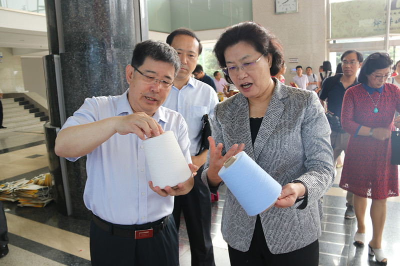 山東康平納集團(tuán)“筒子紗染色智能工廠項(xiàng)目”榮獲第三屆山東工業(yè)突出貢獻(xiàn)項(xiàng)目。集團(tuán)總經(jīng)理劉琳參會(huì)領(lǐng)獎(jiǎng),并在康平納展位向全國(guó)政協(xié)常委、經(jīng)濟(jì)委員會(huì)副主任、中國(guó)工業(yè)經(jīng)濟(jì)聯(lián)合會(huì)會(huì)長(zhǎng)李毅中和山東省政協(xié)黨組副書記、副主席吳翠云介紹了康平納集團(tuán)創(chuàng)新成果,李毅中會(huì)長(zhǎng)和吳翠云副主席對(duì)康平納取得的成績(jī)給予肯定,表示康平納的智能裝備產(chǎn)品為促進(jìn)行業(yè)轉(zhuǎn)型升級(jí)、實(shí)現(xiàn)節(jié)能減排做出了積極貢獻(xiàn),同時(shí)希望企業(yè)繼續(xù)堅(jiān)持創(chuàng)新驅(qū)動(dòng)發(fā)展,為印染行業(yè)新舊動(dòng)能轉(zhuǎn)換和產(chǎn)業(yè)轉(zhuǎn)型升級(jí)做出更大貢獻(xiàn)!