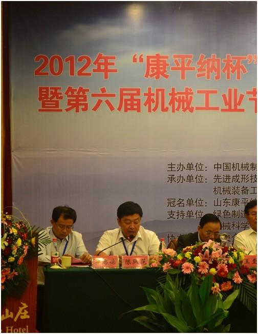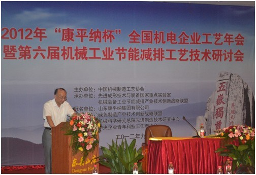 2012年全國機(jī)電企業(yè)工藝年會暨第六屆機(jī)械工業(yè)節(jié)能減排工藝技術(shù)研討會于9月12日—15日在泰安舉行,中國機(jī)械工業(yè)部原副部長陸燕蓀、工信部裝備工業(yè)司機(jī)械處處長王建宇、機(jī)械科學(xué)研究總院原副院長屈賢明、中國機(jī)械制造工藝協(xié)會第四屆理事會理事長、機(jī)械科學(xué)研究總院副院長王西峰、副理事長單忠德、王至堯、張科、陳隊范,山東省機(jī)械工業(yè)協(xié)會副會長管鳳森,泰安市行業(yè)辦公室副主任康蔭國出席會議,全國機(jī)電企業(yè)代表計200余人參加了會議,泰安市政協(xié)副主席朱永強(qiáng)到會祝賀并致辭。