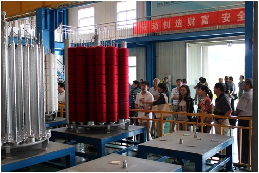 康平納公司董事長陳隊范大會期間致辭,副總經(jīng)理鹿慶福做了《筒子紗數(shù)字化自動染色成套技術(shù)與裝備》的技術(shù)報告,與會人員對康平納高端紡織染整裝備產(chǎn)生了濃厚興趣,并于9月14日下午參觀了康平納科技產(chǎn)業(yè)園及染整生產(chǎn)線,對我公司研發(fā)生產(chǎn)的高端裝備產(chǎn)品給予了高度評價。